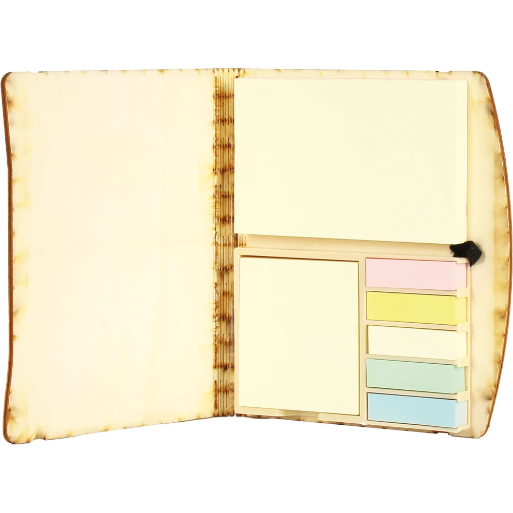 * Ebat: 15.5 x 17 cm * Baskı: UV, Serigrafi * Yapışkanlı Notluk: Var * Kalem Tutucu: Var * Kapak: Ahşap * Yaprak Sayısı: 80