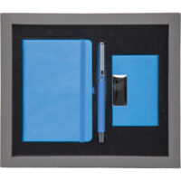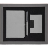 * Termo Deri Defter 9,5 x 14 cm (İstiklal) * Deri ve Metal Kartvizitlik (KVZ-007) * Metal Kalem Roller (0555-490) * Kutu: Karton