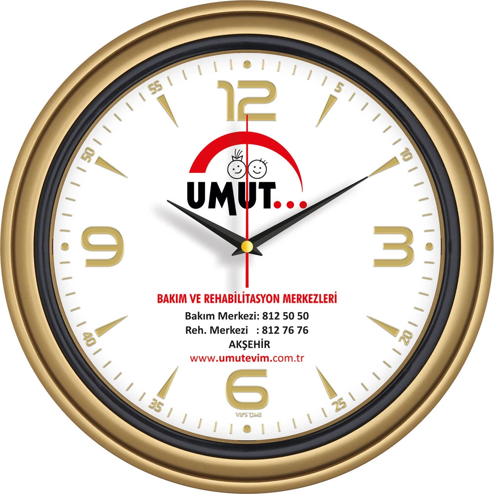 * Ebat: 34 cm * Çerçeve: Plastik * Kadran: Bristol * Saniye: Akar * Cam: Mineral * Baskı: Ofset, Dijital * Koli Adeti: 20 * Not: Altın Varak kadranlar diğer renklerede uygulanabilir.