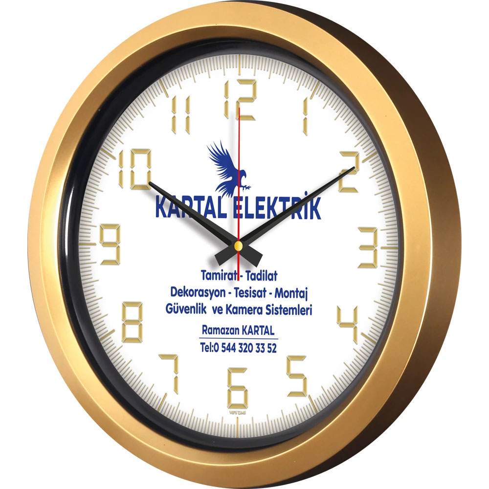 * Ebat: 40 cm * Çerçeve: Plastik * Kadran: Bristol * Saniye: Akar * Cam: Mineral * Baskı: Ofset, Dijital * Koli Adeti: 10 * Not: Altın Varak kadranlar diğer renklerede uygulanabilir.